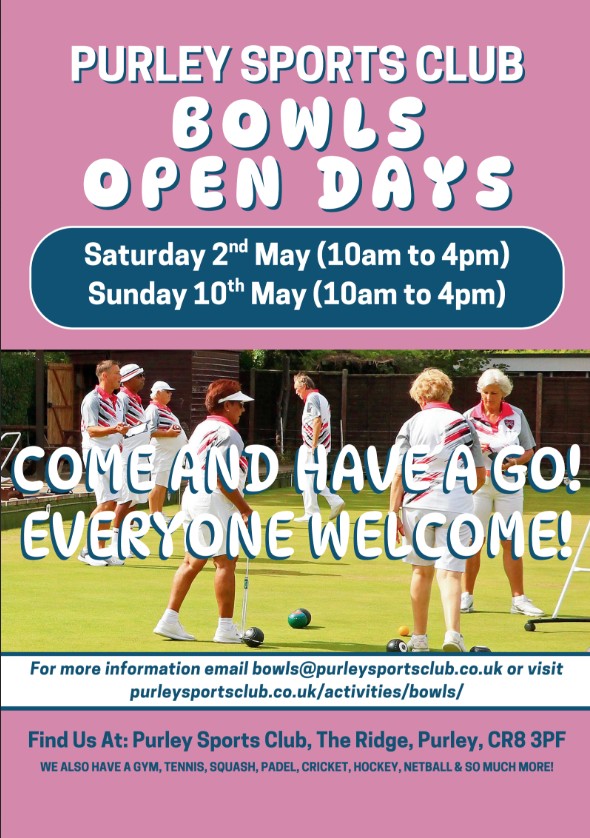 Purley Bowls Club will be hosting 2 open days in 2026
